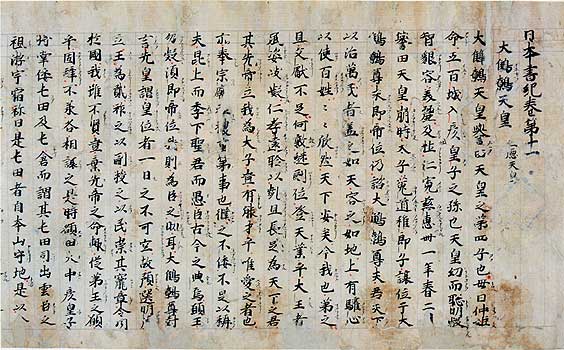 日本書紀 巻第十一 巻頭 前田育徳会蔵 |