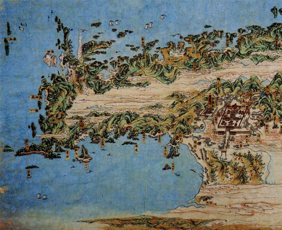 | そこで、オオクニヌシはスサノオの髪を室の垂木に結びつけ、五百引石で室の戸を塞ぎ、スセリヒメを背負い、スサノオの生太刀・生弓矢・天の詔琴を持って逃げだしました。そのとき詔琴ノリゴトが樹木にふれ音を立てたので、目を覚ましたスサノオは、黄泉ヨモツ平坂まで追いつめますが、そこでついに、スサノオはオオクニヌシがいままでの試練に耐えぬいたことを認め、スセリヒメを嫡妻とし、宮居を築き、出雲の王になれといいます。 オオクニヌシは出雲に帰り、スサノオから贈られた生太刀と生弓矢をもって八十神を坂の下に追い落とし、川辺まで追い払って、ついに国づくりを開始しました。 ヤガミヒメは、前の約束どおりオオクニヌシと結婚しましたが、嫡妻のスセリヒメに遠慮して、オオクニヌシとの間に生まれた子を、木の俣にはさんで、かえってしまいます。それで、その子を木俣の神、またの名を御井の神といいます。 ついで、オオクニヌシは、高志国(越後・越中・越前・能登)のヌナカワヒメ(沼河比売)に求婚しようと、その家に出かけて行って、神語歌カミガタリウタをおくりました。 |