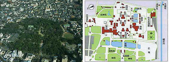 (左)住吉大社航空写真(拡大) (右)住吉大社境内図 |